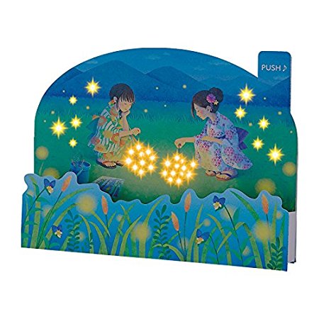 S4273 初夏〜暑中見舞い 光と音のカード 花火と夏祭り[Sanrio]サンリオ ライトメロディカード 曲名:夏は来ぬ立体カード・音付きカード