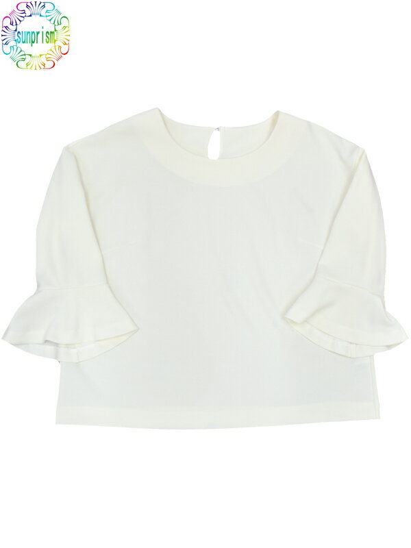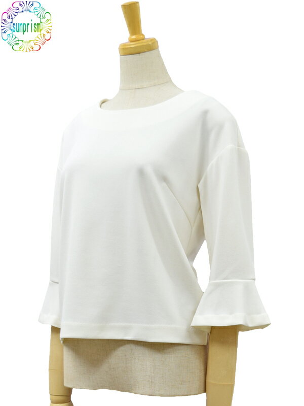 ■プルオーバーはラウンドネック オフショルダー 袖口に切り替えが施されフレアーデザインが可愛いらしさをプラスします♪