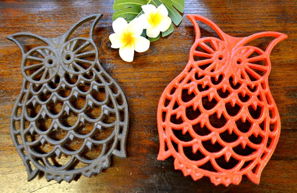 アイアン製ですので耐熱性が高く鍋敷きやヤカンなどの敷物としても大活躍!裏面には家具にキズを付けない様にゴム製の脚が設置しておりますので安心♪