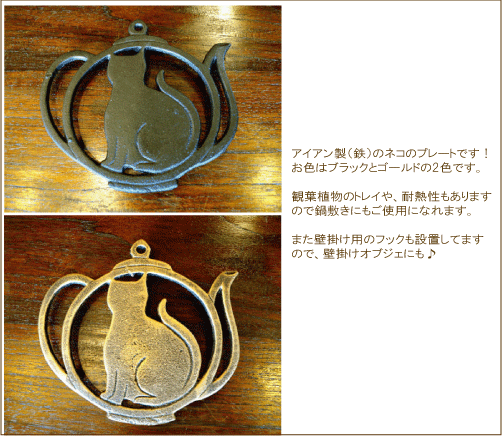 ネコのアイアン製プレート(ポット型 全2色) アイアン製の可愛いネコちゃんプレート☆