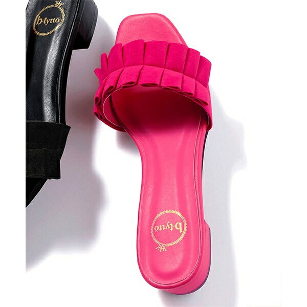ラナンのフリルデザインローヒールサンダルカラフルな色使いが高感度な、フリルモチーフが大人かわいいミュールサンダル。