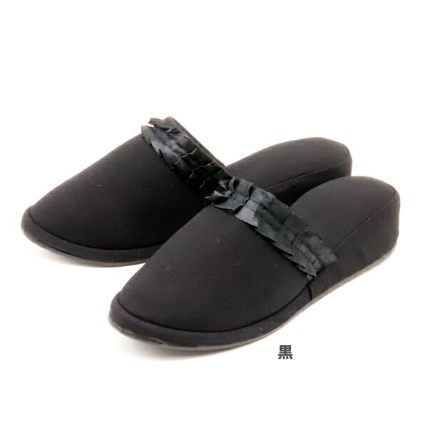 レディース ヒールスリッパ フリル 黒 67695 フォーマル 美脚効果 冠婚葬祭