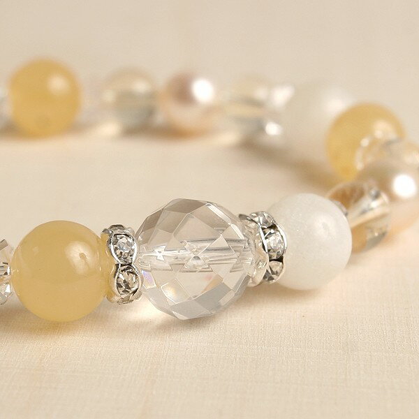 ブルームーンストーンxイエローカルサイトx淡水真珠を使った「天然石ブレスレット」です。